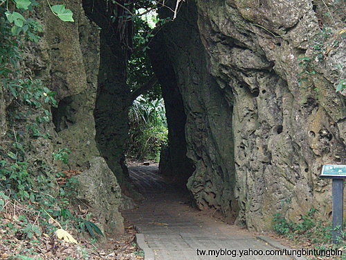 自然公園內石頭裂縫成步道,珊瑚礁岩形成的石頭