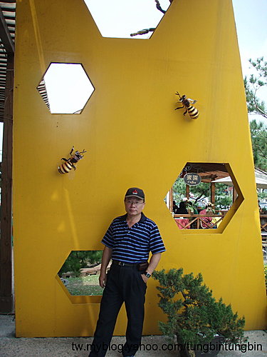 蜂窩造型的大門,意味著你即將進入蜜蜂的世界↑
