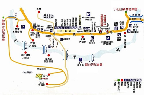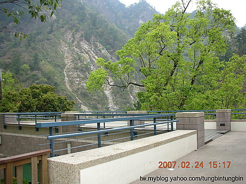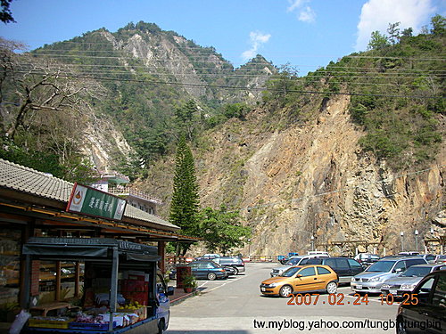 到谷關泡溫泉可將車子停於此,然後再走谷關吊橋到對岸的溫泉街泡湯↑