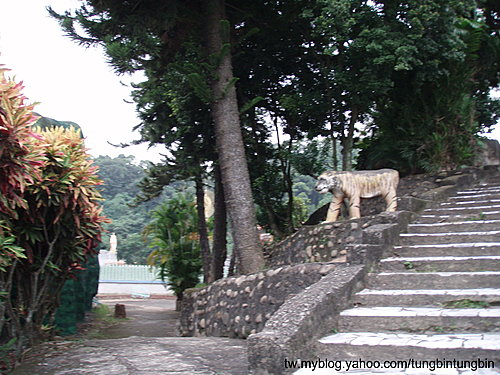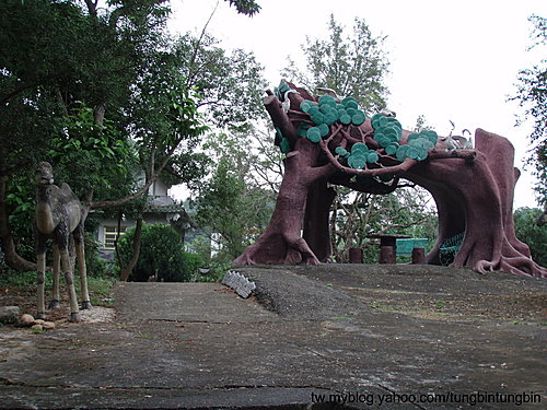 在湖山寺大殿的右側,有一公園,樹蔭濃郁,點佈的動物塑像,可供遊客小憩