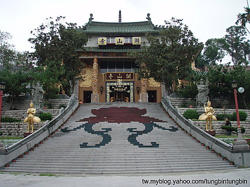 開山闢地,整修環湖沿山的柏油路,興建兩層宮殿式的寺廟
