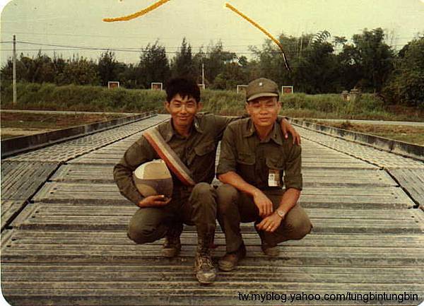 此為我與第五班的班長合影,他是幹訓班出來的,帶兵他行,但是工兵專長他就不行 ↓