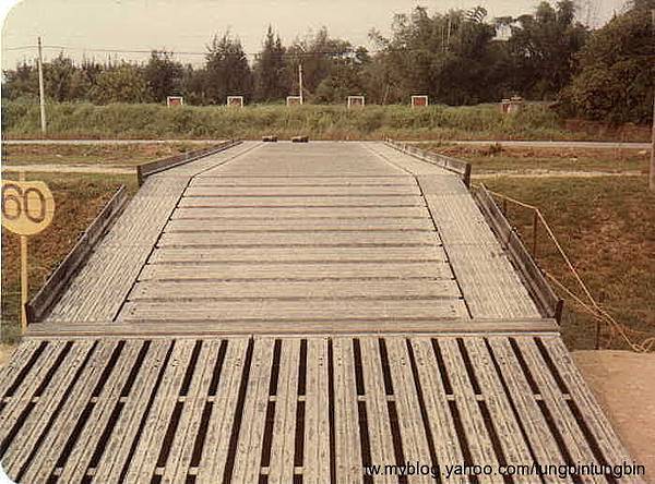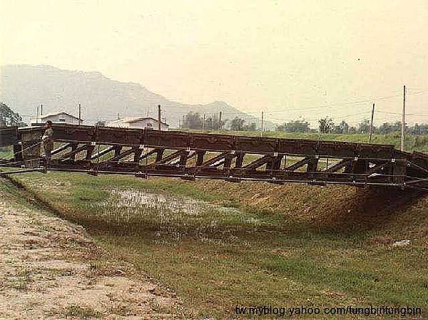 架橋是先整地,然後拉基準線,再設置滑輪,在滑輪上先架導引橋節後再架正式橋節,一節架好後所有人員就扶住兩邊橋桁往前推,推至定點之後再架下一節,一節一節的架,一節一節的推,到快完成時人員因為橋太重了,就會改用軍車來推,〈圖中中間有兩人扶住推杆的地方〉,到達對岸時再把導引橋節拆掉,再用千斤頂把滑輪拿掉,最後才是鋪橋面,這樣整座橋就完成了,在國道三號高速公路中部路段的橋樑也是採用此方法來建橋樑的,看到他們使用此方法建橋樑,彷彿又回到了當兵時架橋的情景,而且架到一半時遇到 921 地震,橋樑竟也沒移位也沒斷掉,這證明此方法是一個很好的架橋方法!