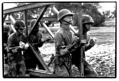 不論 M2 框桁橋或是 MGB 中框橋都是屬於倍力橋的一種,因為它們都是使用臂力來抬橋材的橋種,所以也就是俗稱的臂力橋,也正因為這樣所以工兵在新訓中心選兵時都會選擇體格強壯的士兵來當工兵,而且平時也會特別加強扶地挺身的訓練以強化臂力,為的就是怕抬橋桁時受傷,同時連上長官也都會強調這也是為了大家婚後的幸福著想,我退伍時那腹肌可是六塊再加胸部的兩大塊胸肌共八塊的猛男喔,但是現在腹部已經變成了一大坨啦!