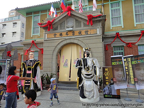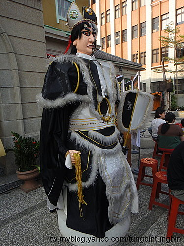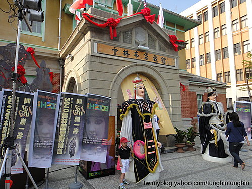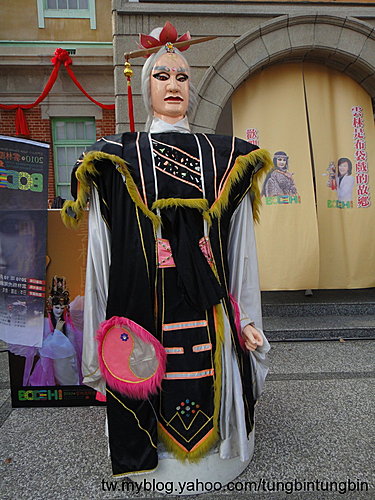 雲林布袋戲館前比人還高的大型木偶 ↓