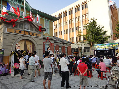 【雲林虎尾布袋戲館】原為虎尾郡役所,其位於虎尾鎮林森路與中山路的交會處是在市街精華區上,於昭和六年(西元1931年)建造,為一棟三合院、二層樓的半木造廳舍,也是虎尾地區最具氣勢的官方建築。在日據時代是虎尾地區的行政及治安機關,國民政府時代則是虎尾地區區屬所在地(區公所),在實施地方自治後又改制為虎尾警察局。民國86年時虎尾舉辦「虎溪躍渡大崙腳」全國文藝季,重現虎尾郡役所的價值,並在三年後(民國89年、西元2000年)登錄為雲林縣歷史建築,免除被拆之命運,而後規劃為虎尾地方重要的傳統藝術─布袋戲主題館,讓有「布袋戲故鄉」之稱的虎尾突顯出地方特色。