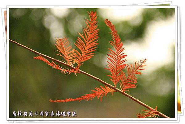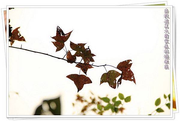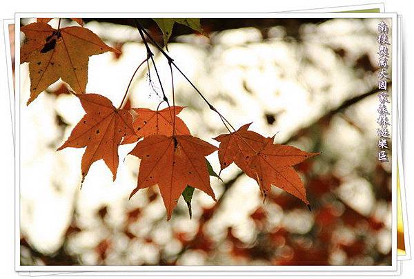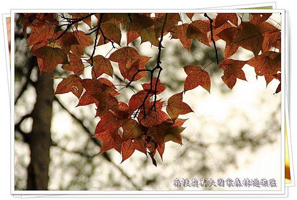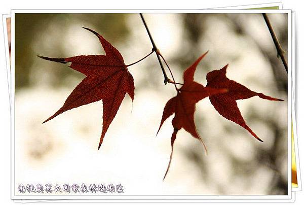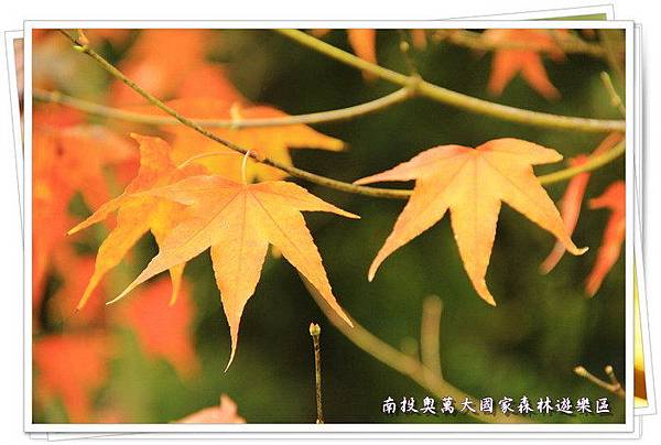 這幾張楓葉的照片是在生態池附近所拍,不過我沒看到生態池,我只看到類似一處的窪地,可能是冬天雨量少而乾枯了吧!奧萬大遊樂區擁有『楓葉的故鄉』之美稱,是全台名氣最響亮的賞楓勝地,每到秋冬楓紅時節遊人如織,就像今日一樣,雖是星期二,但園區真的是萬人空巷,賞楓人潮絡繹不絕