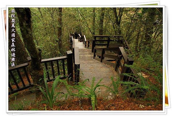 下圖是好漢坡,因為是去程,所以是下坡輕鬆好走,好漢坡全程是木棧道,偶爾設有休息的坐椅,可以在此欣賞鳥兒在枝椏間的跳躍舞姿,聆聽鳥兒在樹梢間美妙的鳴唱歌聲,兼伴著風兒吹響樹葉沙沙合鳴的伴唱節奏,是欣賞風林景致的絕佳場所