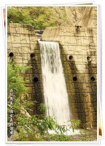 下了好漢坡之後,就會來到了這溪谷攔沙壩,攔沙壩構成了一處人工的小型瀑布,此處也是進入萬大吊橋楓林區兩條路的會集點,目前這裡正在大肆的施工中,以貨櫃組成的臨時鐵橋搭建,在橋上即可感覺山谷吹來的風,正吹向微微發汗的身軀,不覺的陣陣涼意襲上心頭