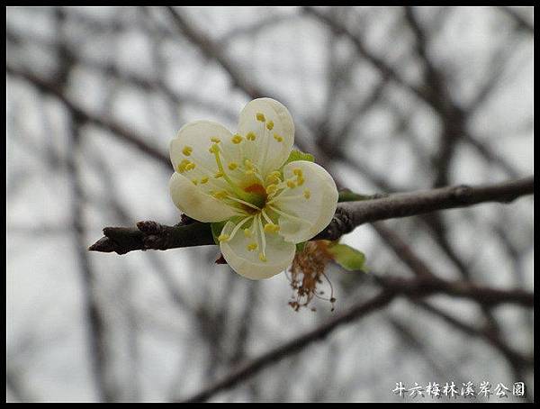 第一張照片是去年12月13日拍的,本以為新栽種的梅花要等三年才會開花,沒想到這新栽種的梅花隔年就開始綻放白色的花朵,枯枝寒梅頗有幾分蒼桑的感覺