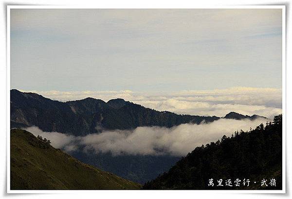 這是在觀景台上向東北的花蓮方向所拍,雲層濃厚又一望無際的雲海,雲層不高也不低,分怖在同一個水平上,層層翻滾,猶如大江東逝水,浪花淘盡英雄淚,是非成敗轉頭空,青山依舊在,只是幾度夕陽紅!