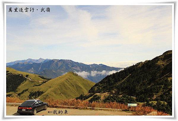上圖這是我的車,這次沒讓我失望,總算讓我一嚐嚮往已久的美景,曾經有人懷疑過是否高山含氧率低的關係,因為高山隨著高度的變化,含氧率會隨著高度越高,其空氣中的含氧率就會越低,武嶺此地的含氧率約是平地的70%左右
