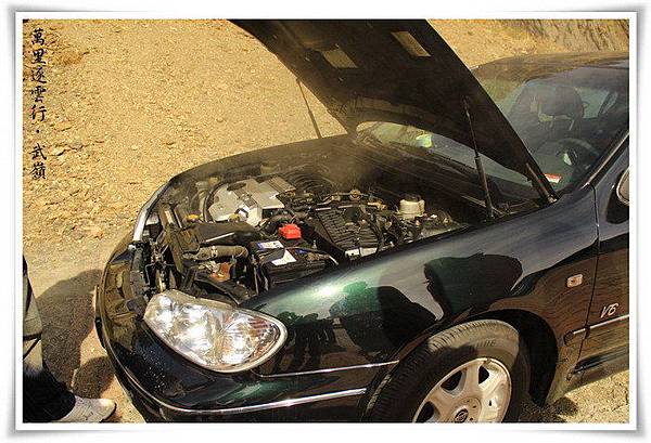 車行到武嶺,這次換別人的車發燒了,一部裕隆日產Cefiro汽車,水箱因生鏽破裂,水箱的水蒸發掉了,整台車到達時全部都在冒煙,旁人要車主打開引擎蓋來看看,那車主竟然連引擎蓋的開關在哪裡都要摸索一陣,也難怪水箱會因生鏽破洞而冒煙