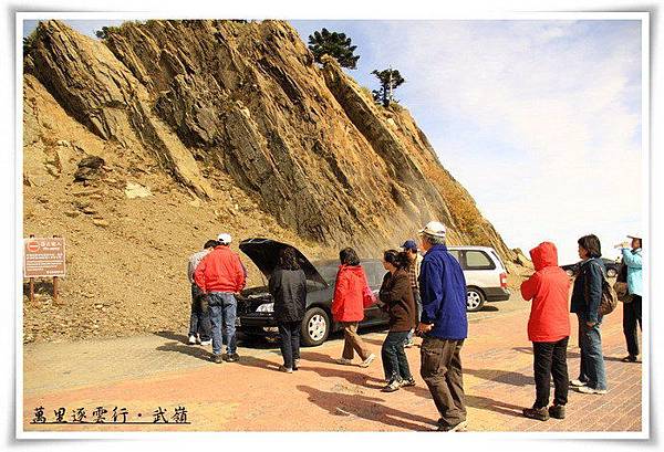 車子旁邊圍著一堆人,大家七嘴八舌的給車主寶貴的意見,在高山上可真的是患難見真情啊!只是可憐的車主這下拖吊費應該會高得嚇人,離武嶺最近的修車場,應該就只有清境而已吧!最後該車如何處理因我已離開,所以就不得而知了