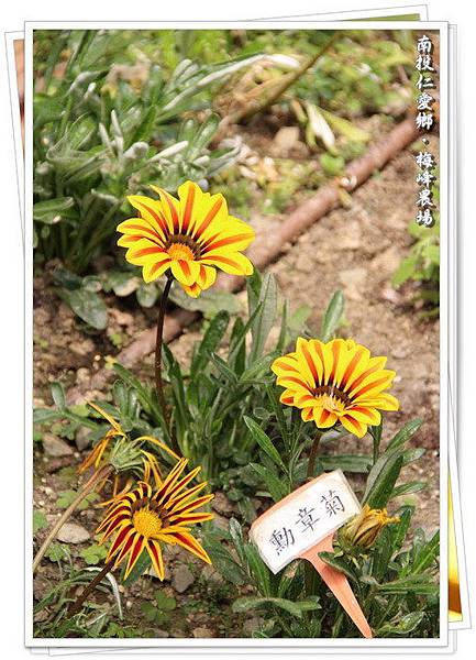 上圖是『勳章菊』,勳章菊花色明艷耀眼,花瓣有赤褐色條紋,盛開時有如一枚美麗的勳章,由於勳章菊花朵白天綻開,夜晚有閉合特性,因此不太是適合作插花材料
