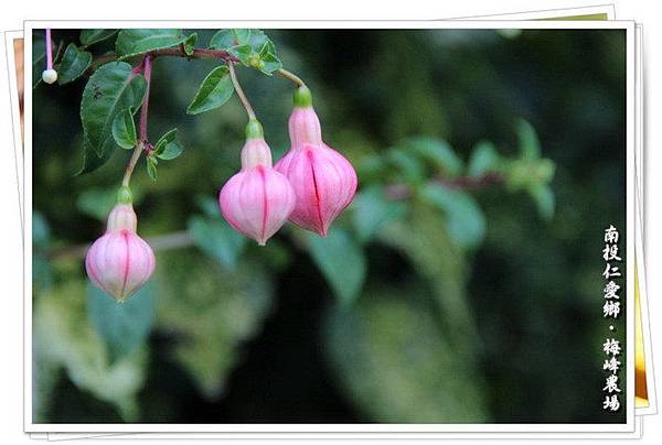 上圖是『吊鐘花』,含苞的花朵還看不出來像什麼,吊鐘花顧名思義盛開後就像一朵吊在樹上的銅鐘,其實也像鈴鐺,像是聖誕節的聖誕樹上掛滿了鈴鐺一樣,在風中隨風搖曳