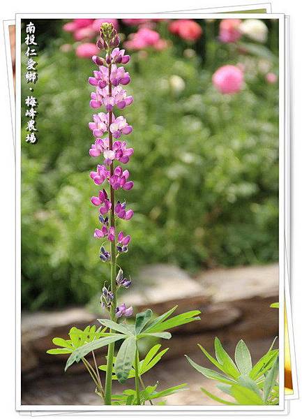 上圖是『葡萄風信子』,花兒太多了,多到數不清,當然也無法一一的記下名字,只感覺這紫色的花很漂亮,有一種氣質優雅的氛圍,經在梅峰農場網頁查證後,上圖的花叫『羽扇豆』