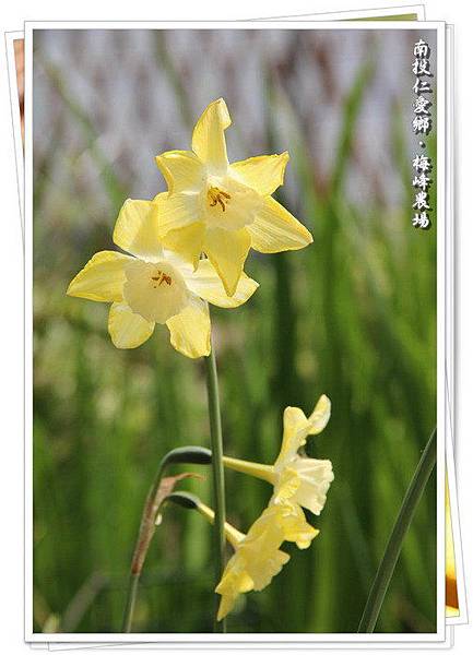 下圖是『西洋水仙』,淡黃色的百合像一朵花仙子,在花叢裡慢舞,在陽光下透著鵝黃,想化做一根羽毛,飛到我所思念的人身邊,託風輕輕的告訴大家,我有多麼想你們,請你們一定要來看我呦!