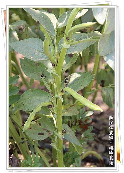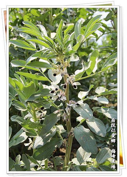 想必大家都吃過『蠶豆』吧!但您可曾見過長在田裡的蠶豆嗎?上圖就是我們吃的蠶豆植株,四四方方的莖,灰綠色的葉子,葉腋間開著白紫色,像隻蝴蝶還有兩塊黑眼紋的花朵,再來仔細瞧瞧下圖,是否看見長長的豆莢像蠶寶寶呢,原來這就是『蠶豆』