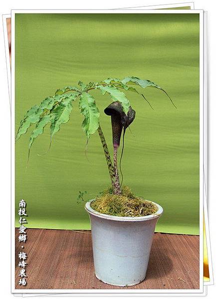 上圖是『蓬萊天南星』,我們小時候稱它為『飯匙鎗』,也就是眼鏡蛇的意思,像一條眼鏡蛇正怒目吐信注視著前方,隨時準備做好攻擊的姿勢,客倌您說像不像啊!小時候看到它,以為它會無聲無息的從我們背後攻擊,所以看到它都會跋腿就跑