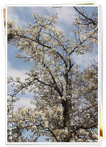 這是蟠桃旁的日本富士櫻,跟阿里山的櫻王一樣,都是開得旺盛雪白,這時候拍比剛來的時候拍,顯得輕鬆愉快許多