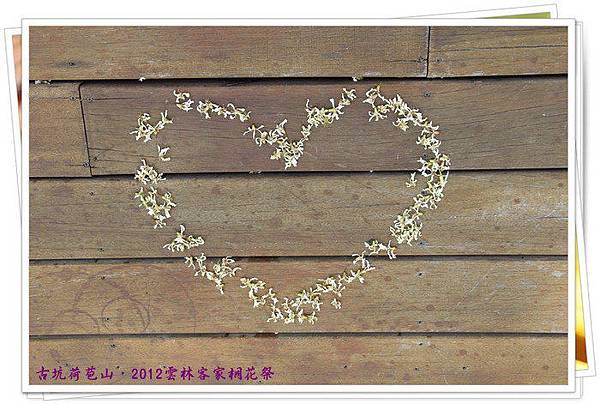 這是表演台地板上別人所撿拾排列好的心形桐花圖案,桐花雖是已經枯萎,但是排列的心形圖案,讓我忍不住想給它拍一張,留住心中的那美麗花朵