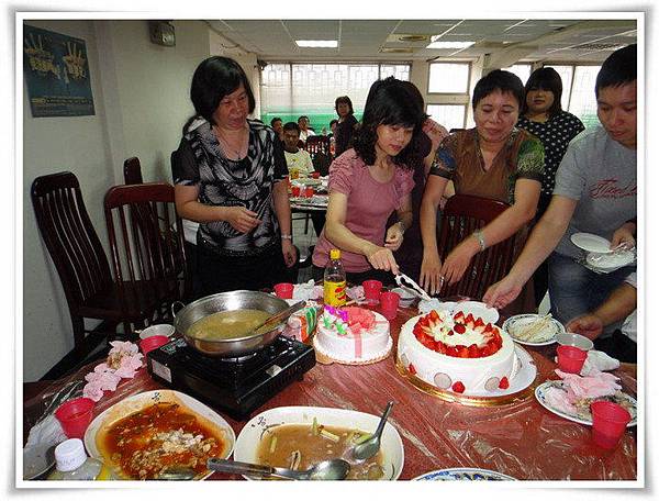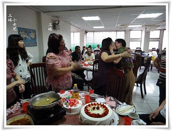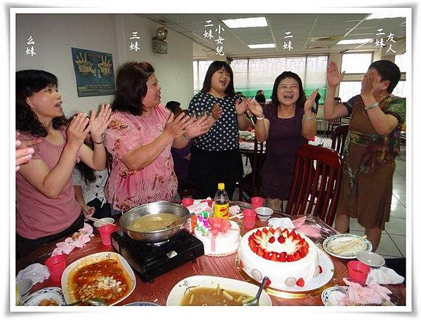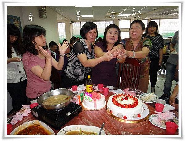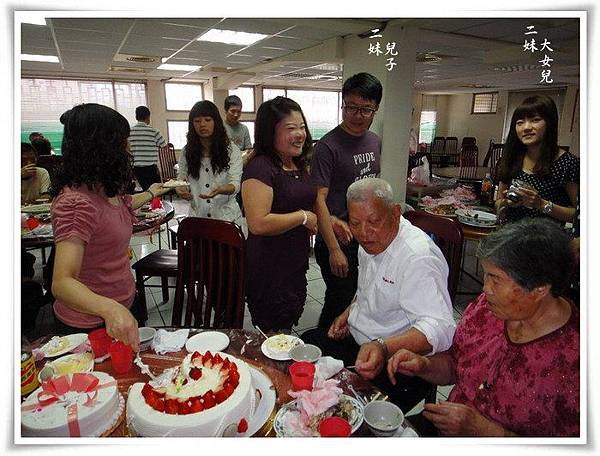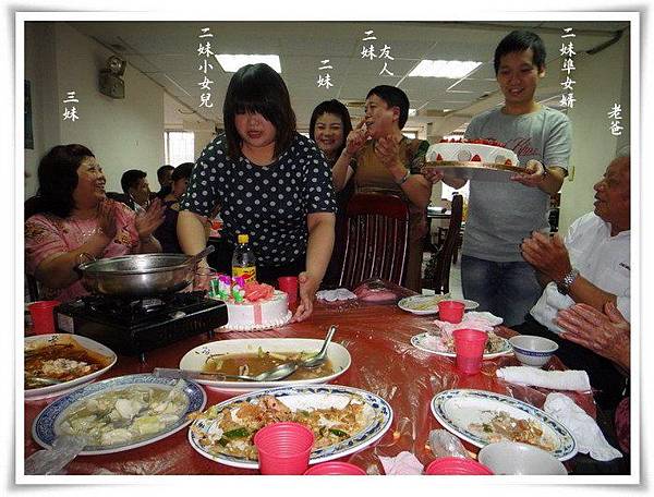 我們全家與二妹友人共席開三桌,小蛋糕由二妹小女兒準備,大蛋糕由準女婿準備,因為大家也都快吃飽了,蛋糕是吃一點點意思意思就好囉