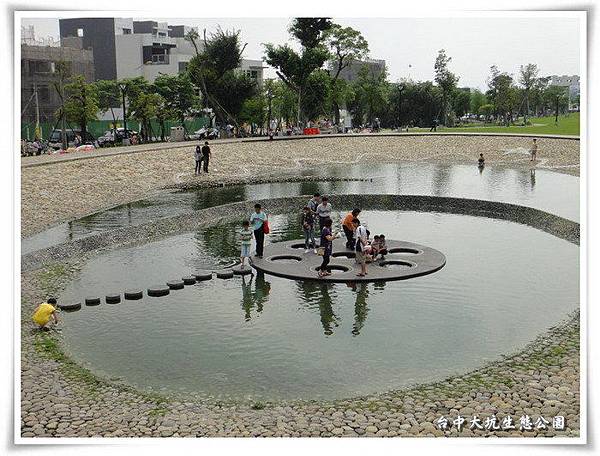 第二站來到了大坑,改制後的大台中─『新都生態公園』,說是生態公園還不如說是親水公園,這麼多的小朋友在水泥池裡玩耍,看不出生態何在,不過在夏天裡應該是個玩水的好地方