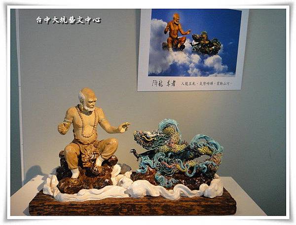 『朱義成交趾陶雕塑個展~十八羅漢的時空魅力與生命藝術』,在藝文中心裡覺得這些交趾陶做工精細,色彩豔麗,所以忍不住拍照,此時一名保全衝過來制止拍照,不過這些交趾陶的作者出面說沒關係!沒關係!害我都不好意思再拍了