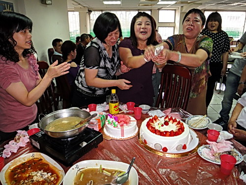 畫面上三個女人都是屬兔,也是同年齡,所以就一同切蛋糕慶賀囉!這一天雖然很重大,不過也不怎麼樣,但對妳們來說很重要,生日快樂!祝妳們幸福一輩子!