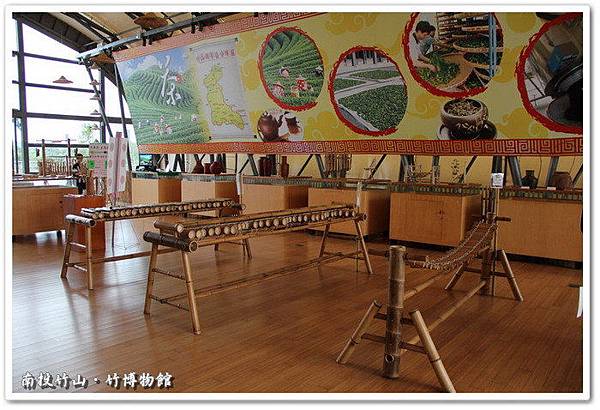 竹博物館是兩邊各一段像竹子被鋸開的造型,分別為竹博物館與地方產業文化館,展館空間約 一百四十坪 ,展示目的在建立觀看者,如何以凝視者的角色,看待竹子如何成為竹山人的生活技藝,而這些生活技藝如何成為生活產業