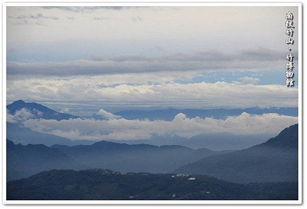 回程來到了竹山街上的『竹博物館』,此時是下午三點半,還有時間就進去走走吧!在竹博物館的廣場上向東邊瞭望,美麗純白的雲海仍然在向我招手,第一張相片就是在竹博物館的廣場裡,使用長鏡頭拍下雲海的最後身影