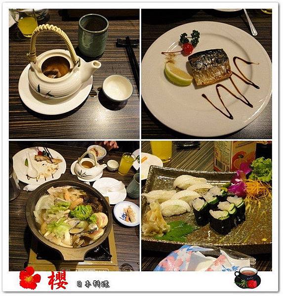 融合了「櫻花」的意象概念,為營造出一種大膽的設計中, 又具現代感的繁華,刺身、壽司、麵飯、鍋類、串燒、日式小菜,日式定食等各式創意料理均在『櫻』日本料理一一呈現