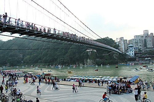 昔日『連橫』北遊碧潭見此一勝景,即提詞贊道:『大橋千尺枕江流,畫舫笙歌古渡頭。隔岸素馨花似雪,香風吹上水邊樓』。可見碧潭吊橋之美,非浪得虛名,每逢皓月當空,泛舟『碧潭』,儷影雙雙,你儂我儂,只羨鴛鴦不羨仙,此情此景,人間難得幾回有,因此而被列為『台灣八景』