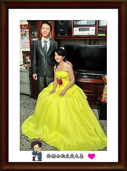 右起為姊姊的三女兒、四女兒、姊夫、小兒子、新郎、新娘、姊姊、大女兒。很可惜的是大女兒的婚禮我沒參加,我上班的公司連外甥女要出嫁都無法請假,而這次也是喬了很久才成功,有人打趣道說是否連兒子娶媳也無法請假,那或許也有可能喔!因為連清明節也沒辦法休假祭祖,連祖先都沒了,哪來的兒子結婚,真的是一點人性都沒有