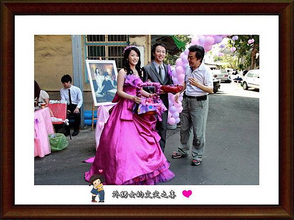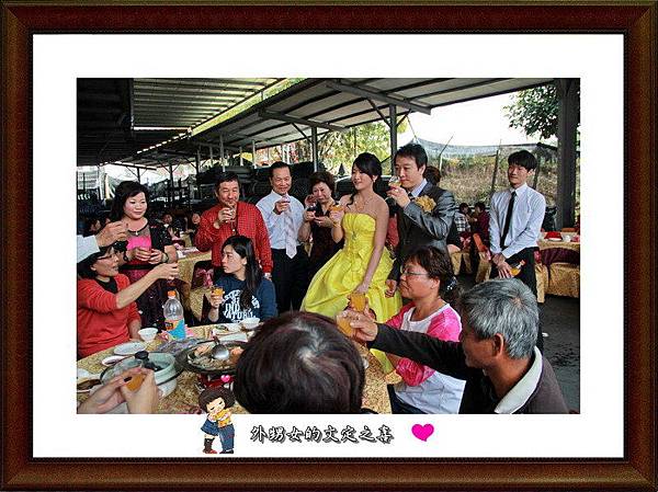尊禮成俗後移師到外面來合照,『一對新人鼓琴瑟,親戚朋友同聲賀,鴛鴦成雙又成對,家門昌盛享富貴』。