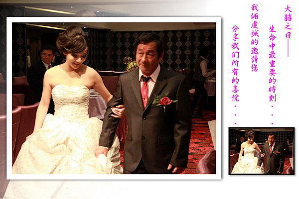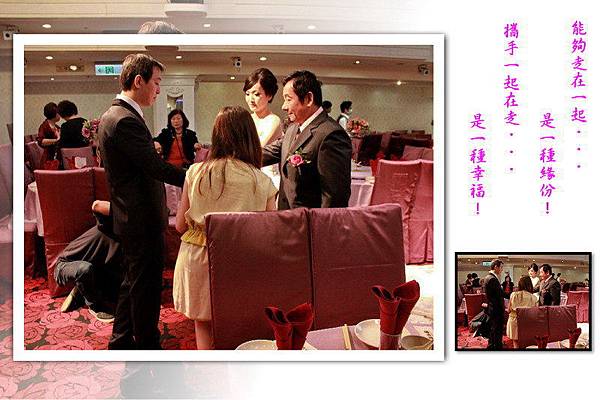 我好不容易的喬出一天假,必竟今天外甥女『綉菀』要出嫁,新娘主桌少不了我這母舅的大位子,說什麼也要排除萬難的參加,今日天氣陰雨綿綿,就像新娘的待嫁心情,開心又有些不捨。男方準備了一輛遊覽車讓我們這些南部的親友,也都能一起北上參加婚宴,並祝福『綉菀』有情人終成眷屬、永浴愛河、白頭偕老、天作之合、幸福百分百