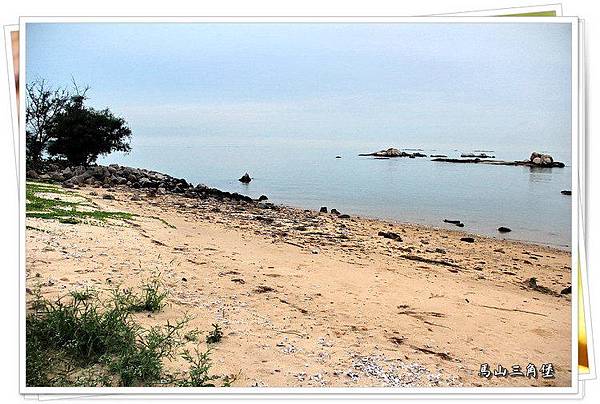 『馬山三角堡』前方的沙灘,兩軍對峙時期的地雷已清除,水中暗哨也不存在,留下這一大片未曾遭蹂躪過的沙灘處女地,腳踩著細緻的黃色細沙,水面平靜無波,早晨的迷霧壟罩著水面,分不出海面或天空的海天一色,此刻水面靜隘到有如對岸水鬼即將摸上來,彷彿昔日的緊張時刻再度重演