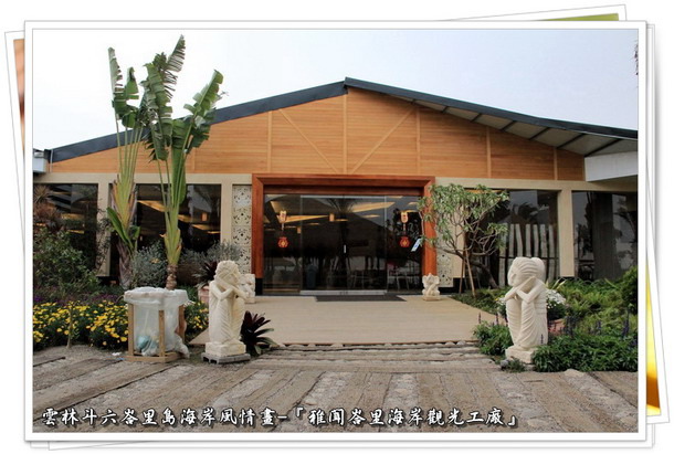 路過觀光工廠時只見門口搭起茅草屋的涼亭,但這茅草屋又很有印尼峇里島風情的感覺,停車場依然停滿了大小車輛,尤以遊覽車為最多,這時就更讓我產生了非一探究竟不可的決心,適巧當晚在網友『小潔』的部落格裡,看到她對此觀光工廠的報導,原來這是『雅聞生技股份有限公司』旗下的『峇里海岸觀光工廠』