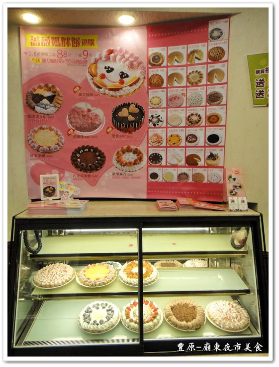 這家『薔薇派』是豐原總店,地址:台中市豐原區水源路95之1號,電話:04-2522-0791。全省有好多家分店可以上網查尋分店位址,店家將每一種口味切成10等份,顧客可以每一口味選擇一等份,我們選了10片不同口味之後包裝成一份『薔薇派』,然後先寄放店家冰櫃再去逛『豐原廟東夜市』