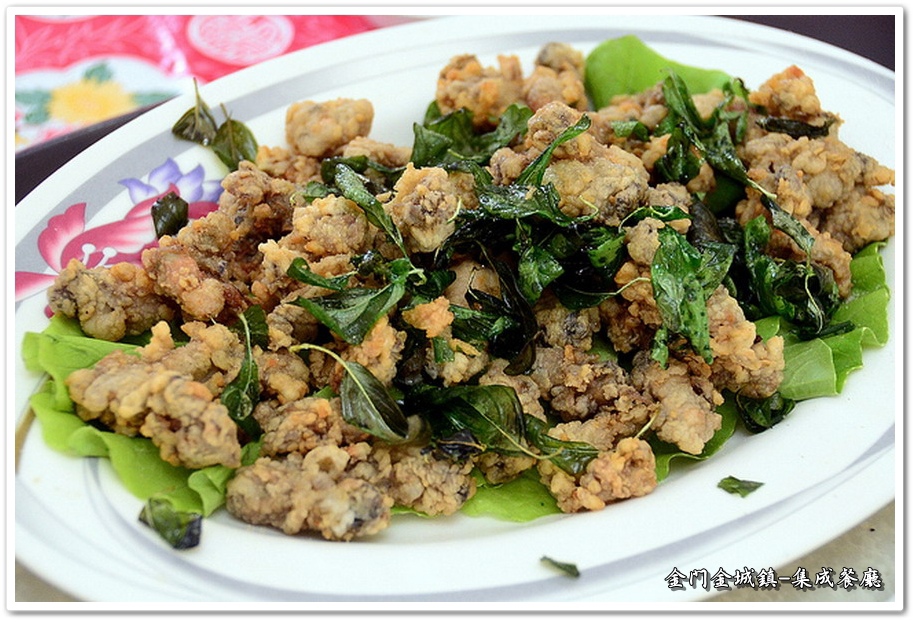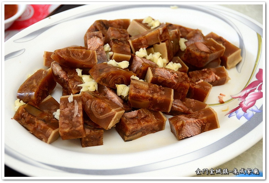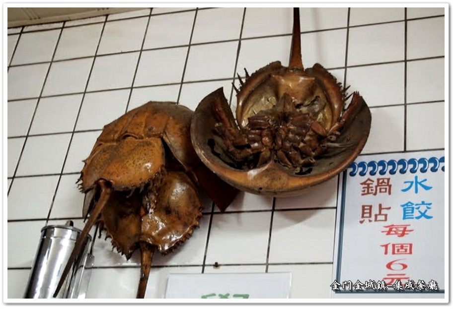 因此〝集天下美味之大成〞的『集成』之名則順應而生,現在的『集成餐廳』保留各省傳統風味後,結合金門地區料理方式,研製出最道地、美味的各式美食。在餐後老闆跟我說他們餐廳也有『海鋼盔』的料理,但我直覺金門鱟不是被列為保育類嗎?老闆解釋金門鱟是『護育類』不是『保育類』,所以需要特定時節裡才有供應,而目前金門鱟最大的食客則來自於中國大陸的陸客團