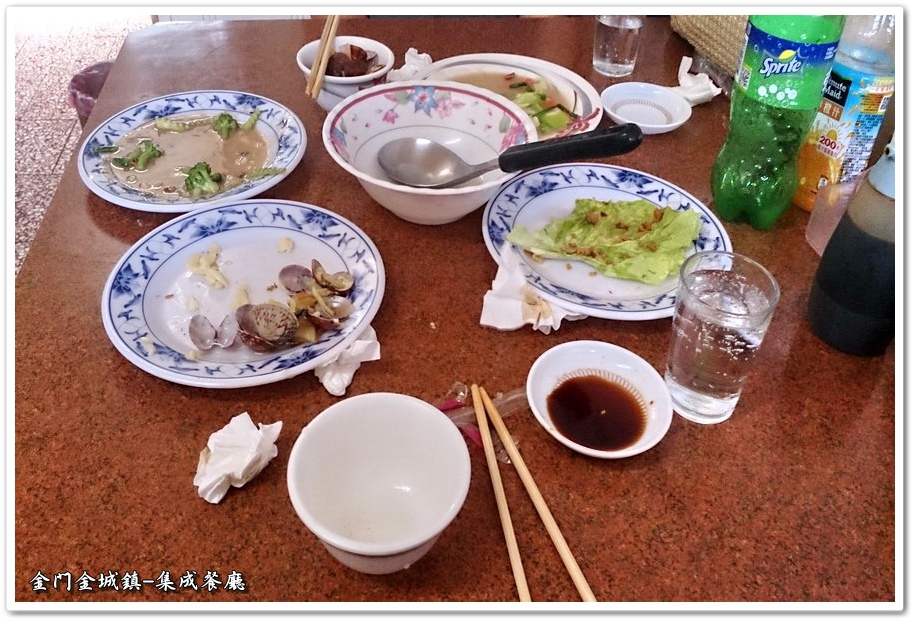 續上篇!當我們在溪邊的『陽光沙灘』裡脫光光曬了日光浴後,直覺得肚子也餓了,游泳真的是太消耗體力了,我們遂從金門東半島的『溪邊』,趕到西半島的金城鎮『集成餐廳』吃飯,為何要那麼的如此勞累、大費周章呢?因為此趟金門行是以美食及風獅爺為重點,所以就得因美食而吃遍金門