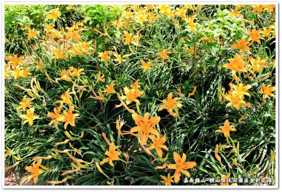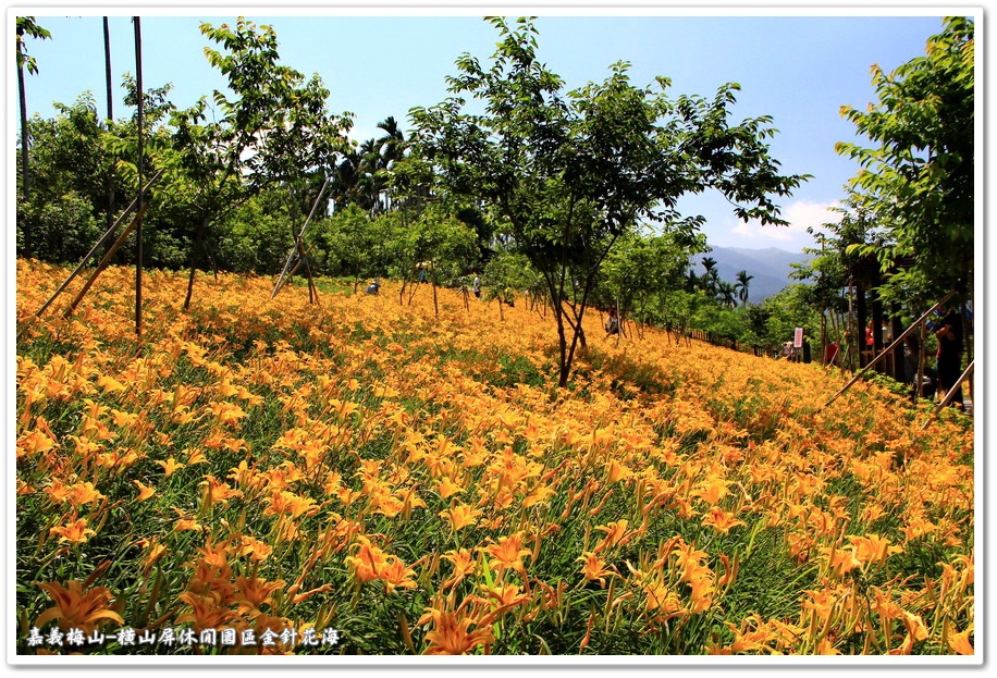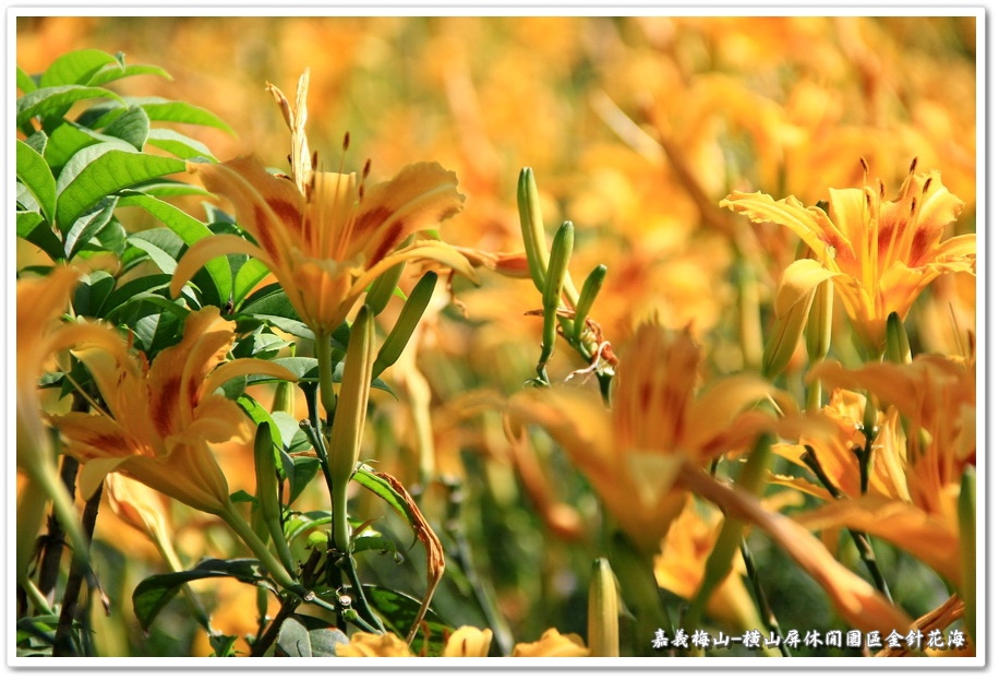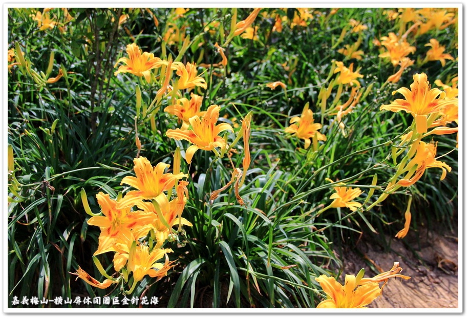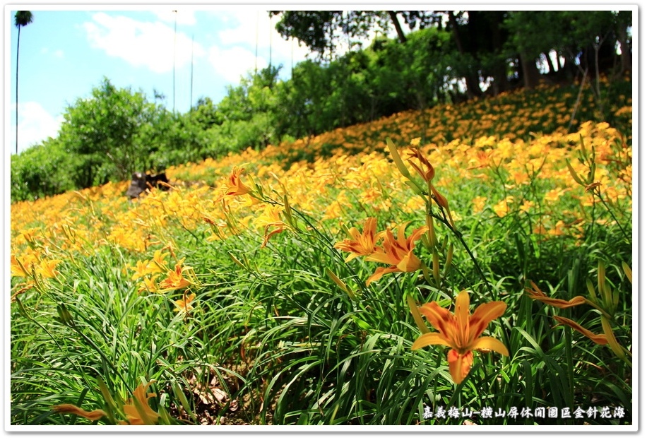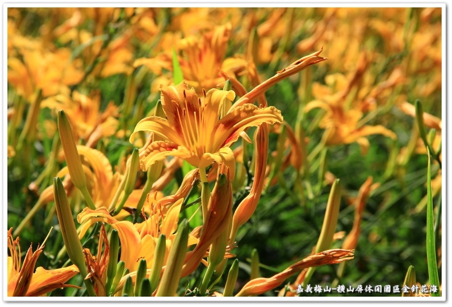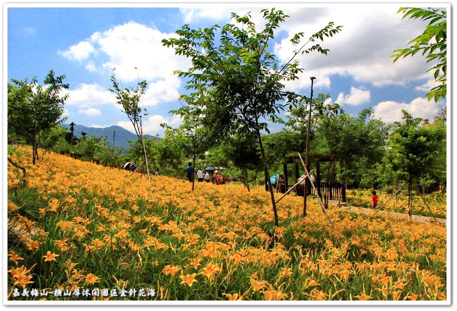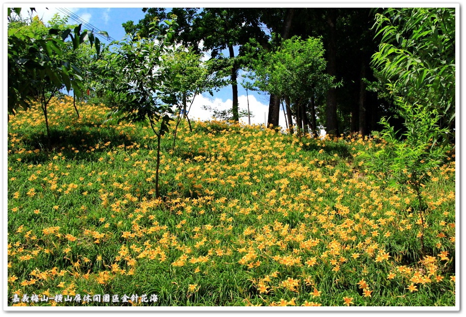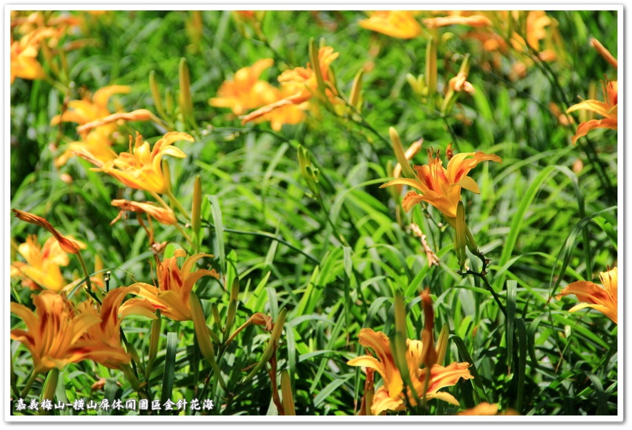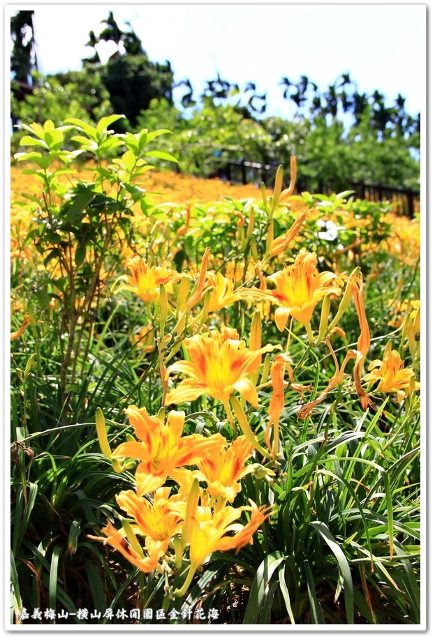 嘉義梅山『橫山屏休閒園區』金針花海從5月1日起到6月30日止,為期兩個月,展示在地農村文化的特色景觀空間,主辦單為梅山『玉虛宮』誠摯邀請您蒞臨共襄盛舉。由『橫山屏休閒園區』鐵拱門進入約200公尺即是『鎮安宮』的花海區