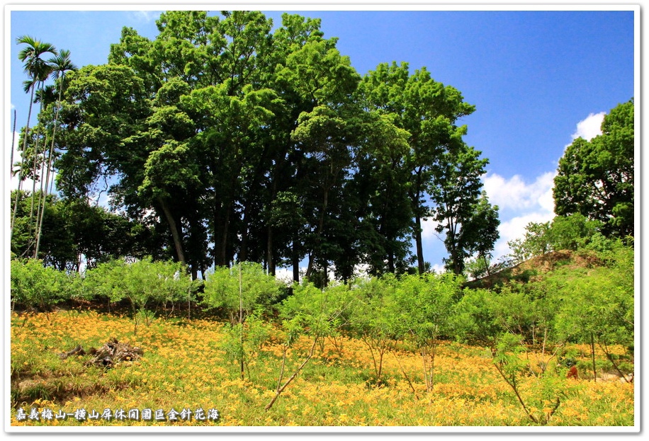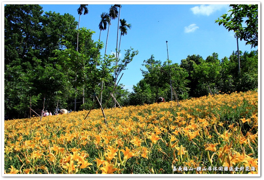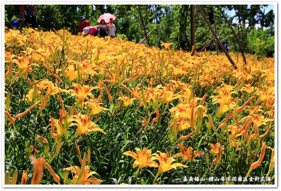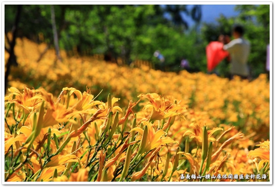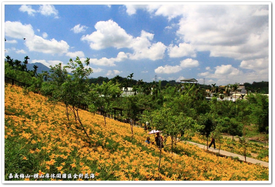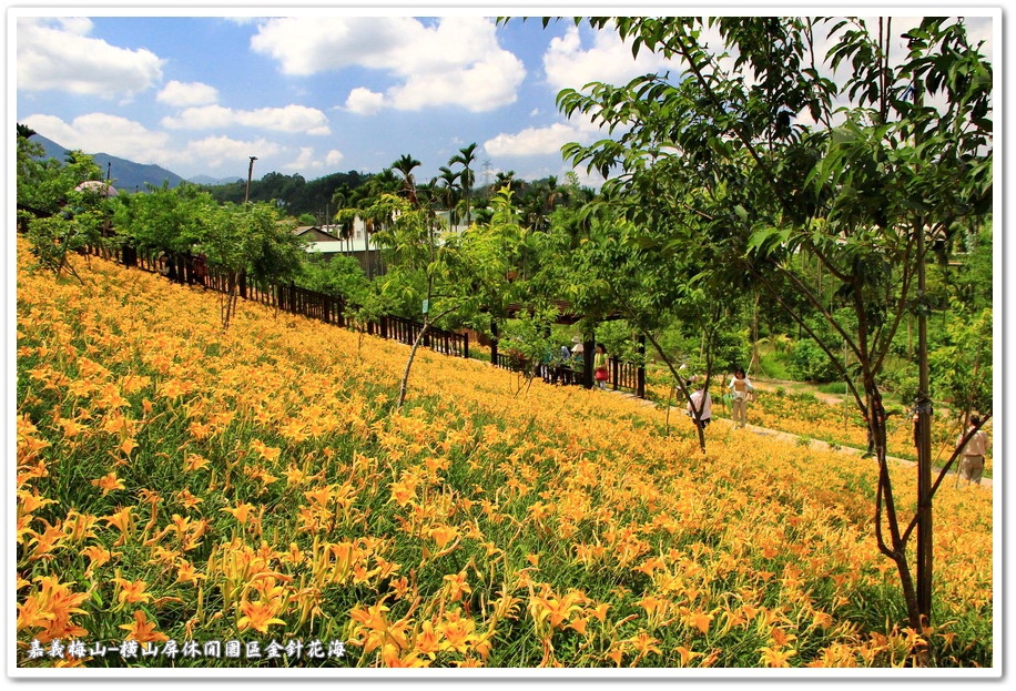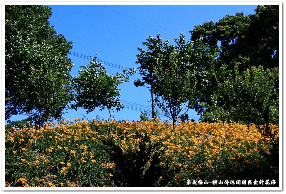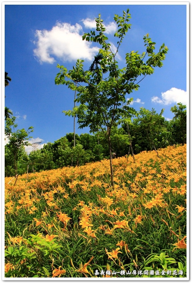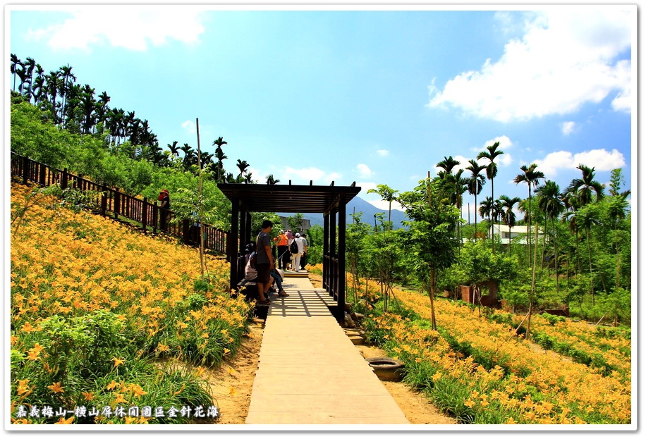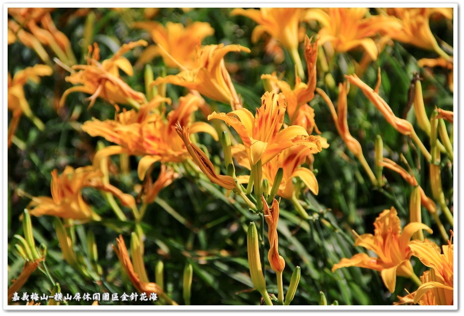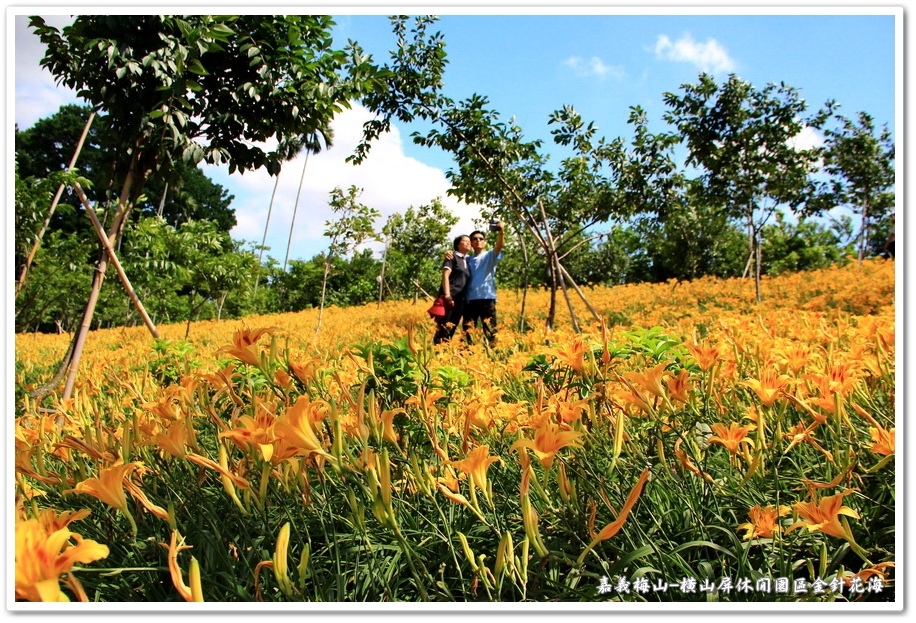 嘉義梅山『橫山屏休閒園區』金針花海從5月1日起到6月30日止,為期兩個月,展示在地農村文化的特色景觀空間,主辦單為梅山『玉虛宮』誠摯邀請您蒞臨共襄盛舉。由『橫山屏休閒園區』鐵拱門進入約200公尺即是『鎮安宮』的花海區