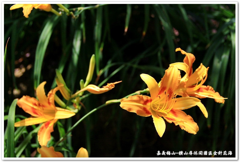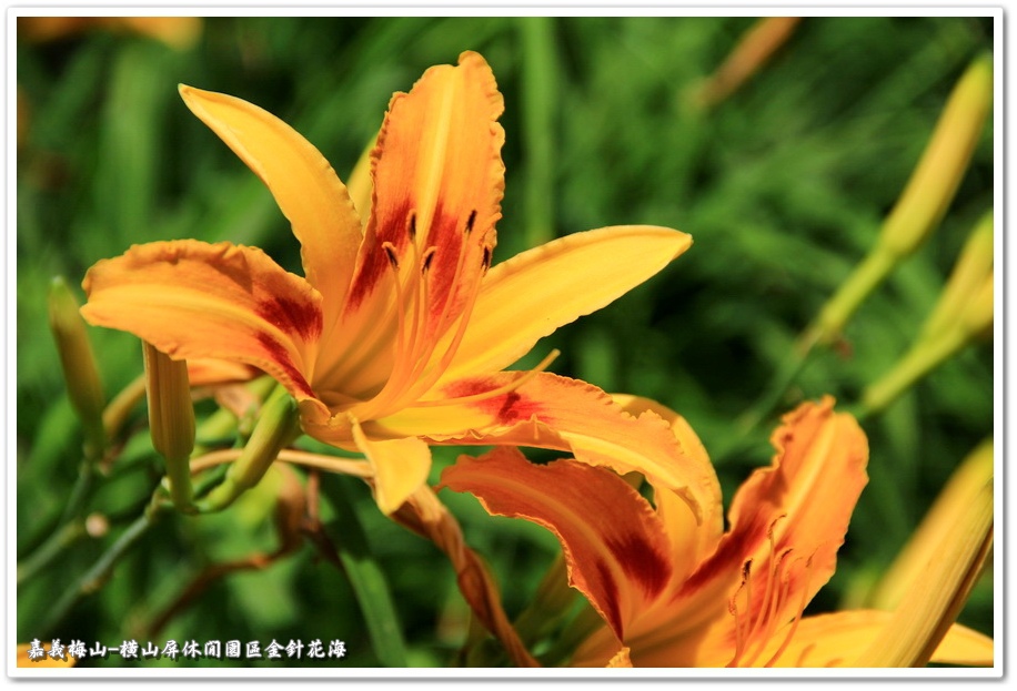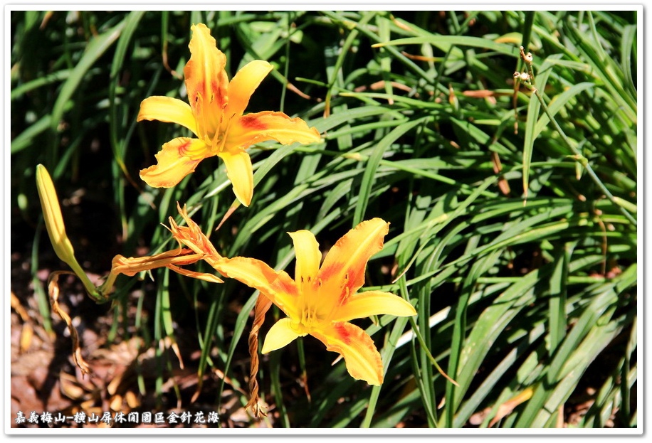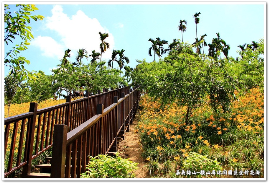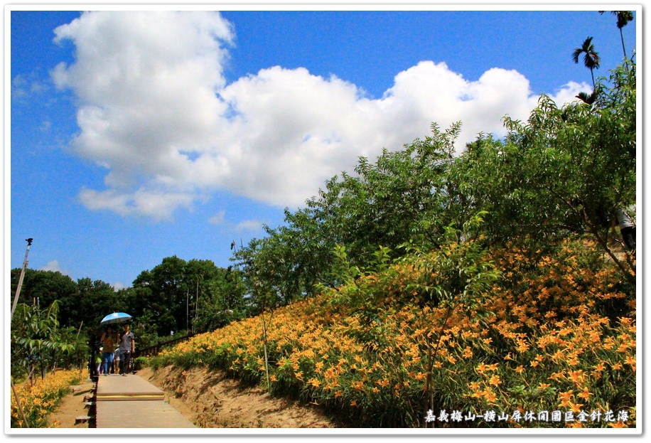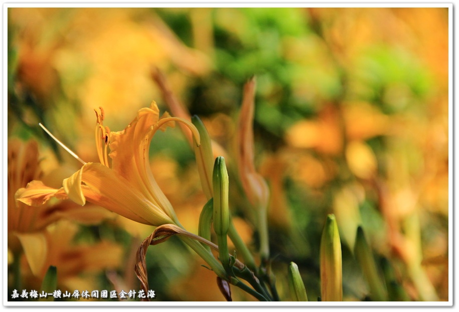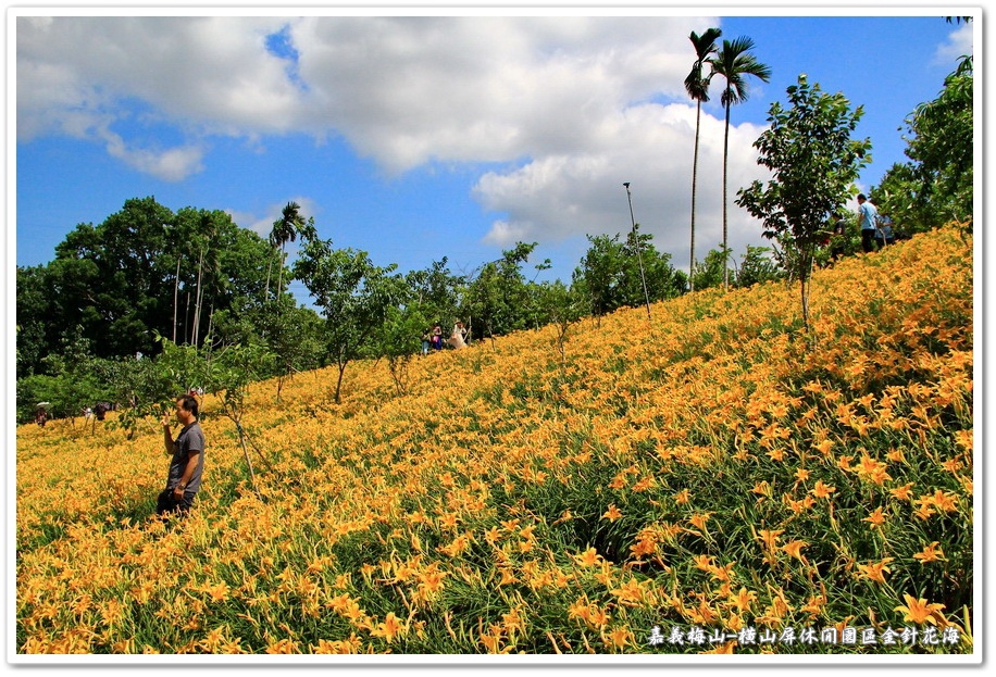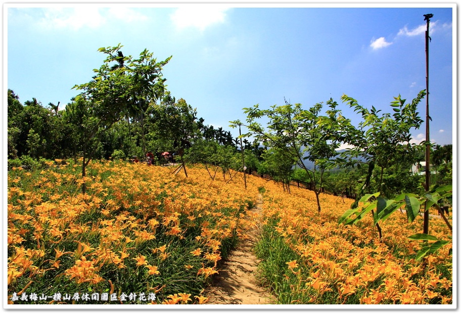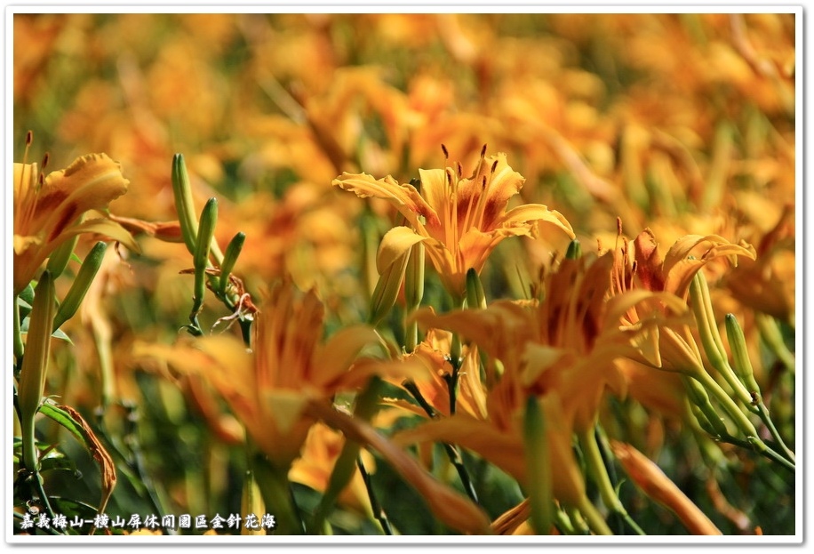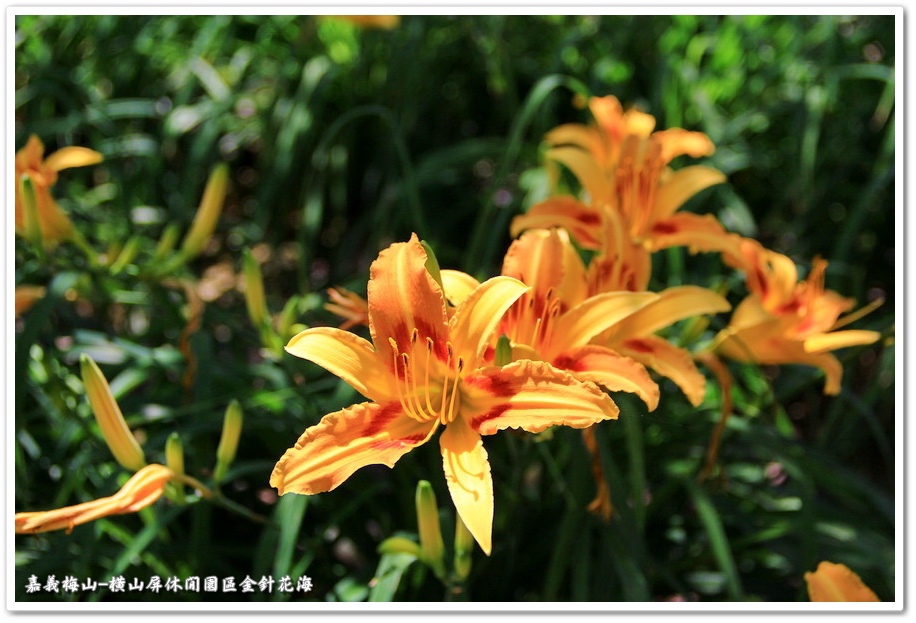 嘉義梅山『橫山屏休閒園區』金針花海從5月1日起到6月30日止,為期兩個月,展示在地農村文化的特色景觀空間,主辦單為梅山『玉虛宮』誠摯邀請您蒞臨共襄盛舉。由『橫山屏休閒園區』鐵拱門進入約200公尺即是『鎮安宮』的花海區