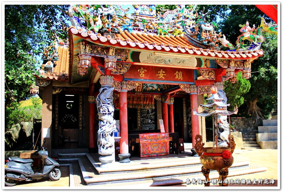 因為梅山的主要信仰中心是『玉虛宮』,主祀為『玄天上帝』,一個部落都須要有一間『主廟』及一間『土地公廟』,部落四個方向還要有『將爺廟』來保護村落安全,而『鎮安宮』就是土地公廟,金針花海則屬於廟產的一部份,所以花海活動由梅山『玉虛宮』主導