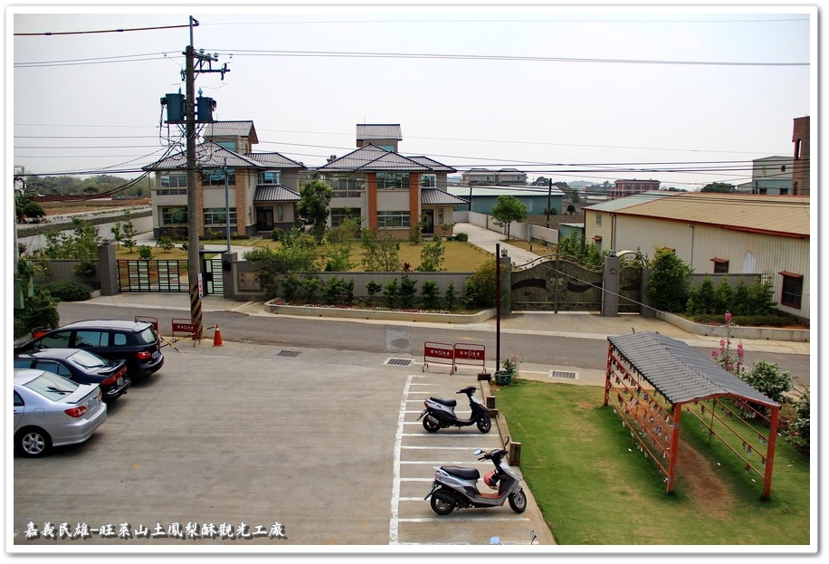 當我在民雄鵝肉一條街的『正宗民雄鵝肉亭』吃過美味的鵝肉後,隨即驅車取道嘉106縣道往嘉義『中正大學』方向走,穿過『中正大學』校區前的芒果綠色隧道之後,右轉嘉106-2縣道即達『旺萊山』土鳳梨酥觀光工廠