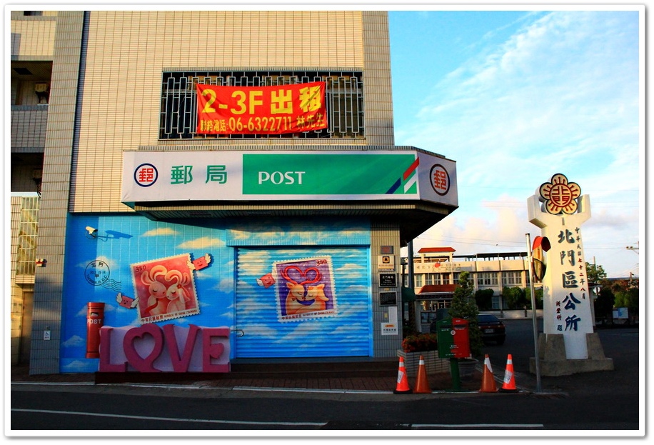 返回到『北門遊客中心』的東側,北門區公所前的郵局,我在此郵局旁邊的『北門天地魚翅肉粳麵』吃晚餐,因為時間已經是傍晚6點半,吃飽晚餐後就準備回家