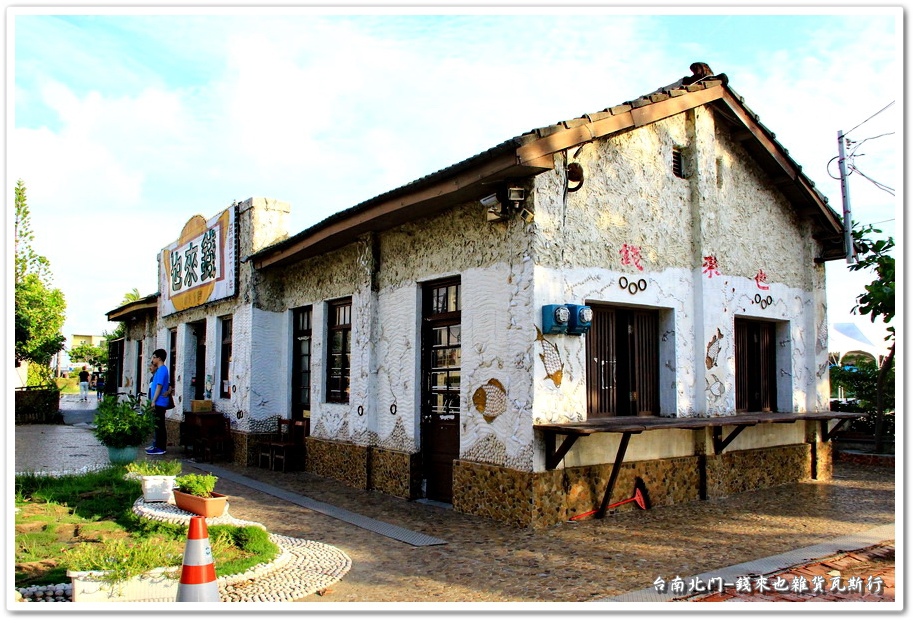 由『北門遊客中心』來到這裡是『錢來也雜貨瓦斯行』的背面,與『北門遊客中心』同向平行建築的『錢來也雜貨瓦斯行』,興建於民國41年,原本是台鹽的員工福利社,在民國90年時,因為北門鹽場停止生產,使得原本是員工福利社的『錢來也』逐漸沒落
