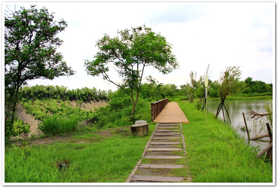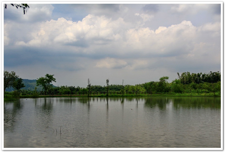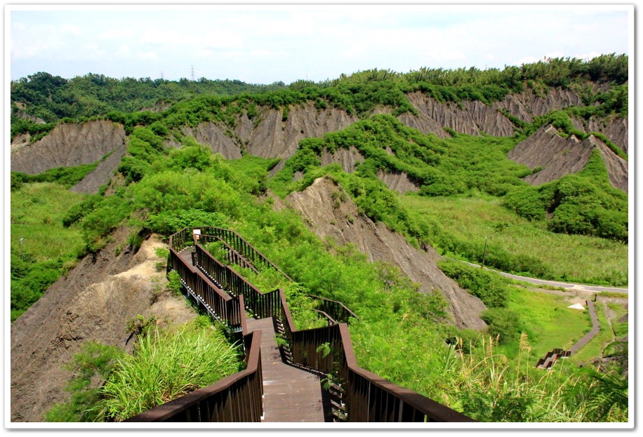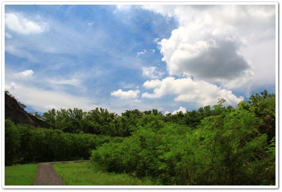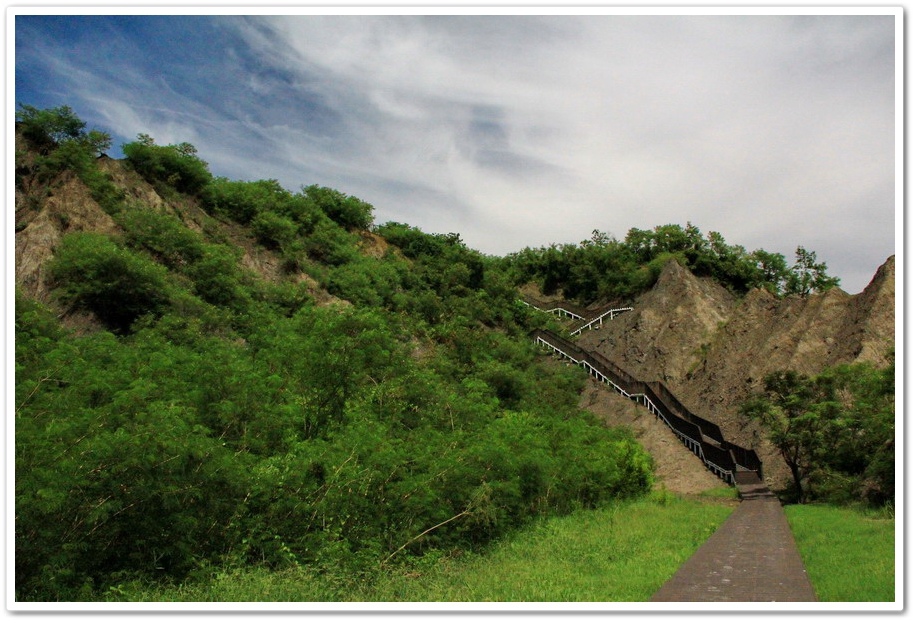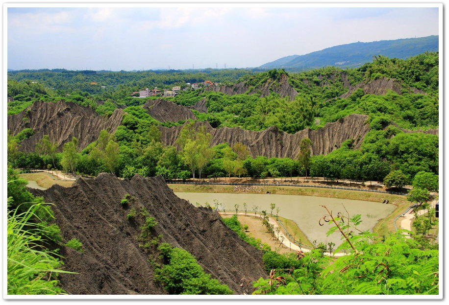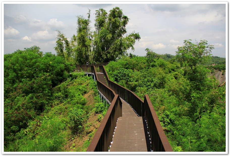 不過既然來了,那就到處走走吧!或許我能在此尋找出記憶認知裡的蜘絲馬跡,遠方是『田寮月世界』裡入口處的『玉池』,由環湖步道被一分為一大一小的『玉池』,水質澄靜時,則能倒映遠處的泥岩景觀